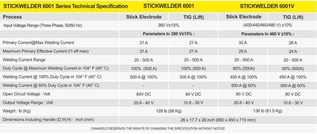clThe Stickwelder 6000 is an extra heavy-duty unit capable of both Stick Welding and TIG welding with a lift start. Designed for extra heavy fabrication projects. Its 500 Amps of power combined with a 100% duty cycle makes the Stickwelder 6000 Series the perfect machine for extra heavy-duty steel fabrication in tough conditions.